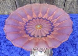 WE POST TO USA, CANADA, EUROPEAN UNION, UK, AUSTRALIA... Art Deco Glass Fruit Bowl On Chrome Figurine and Base. Stunning 1930's Art Deco salmon pink fruit bowl.