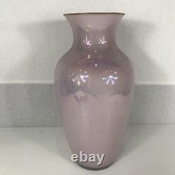 Large Pink Lustre Murano Vetri Vase Gilt Rim Height 35cm (Scratches & Heavy Wear). This is a lovely design vase in large proportions. Heavy scratches and marks throughout no chips or cracks. Please check out my other items currently listed including more art glass. Any questions please feel free to ask.