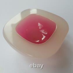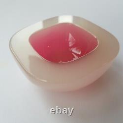 Scarce original vintage 1950s Murano Archimede Seguso cased art glass dish 10cm Geode style pink purple, Italy made Venetian studio art glass. Very fine clean original condition, no chips or damage, very minor signs of use, clean base with minimal signs of any light surface scratching. The original old gold Murano paper label on base has been partly worn off.