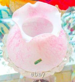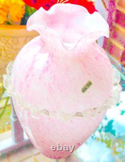 Murano Style Hand Blown Italy Pink Arg 925 Silver Ruffled Art Glass Vase 12Tall